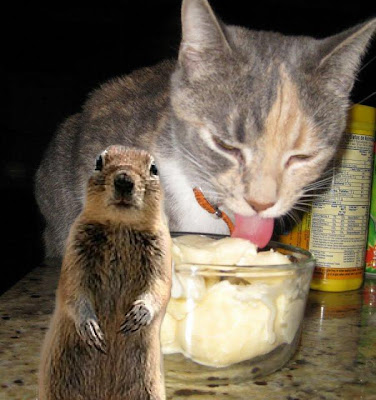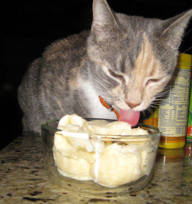 I made a bowl of ice cream the other night. Putting away the ice cream, I turned around to see this: