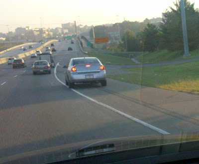 If you’re going to drive like a moron, it’s probably not a good idea to be in such an identifiable car. Below is a Chevy with Judiciary plates that say J5. The driver of this car cut across two lanes of traffic to cut me off and then (as seen here) drove illegally in the emergency lane because the trailer in front was going too slow: